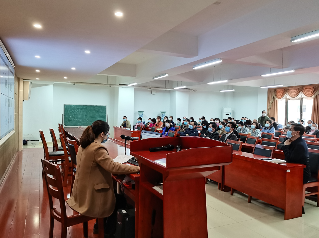 2022年3月29日,”‘一平三端’助力打造混合式智慧课堂“教学研讨培训会在立言楼四楼会议室举行,讲座由邓桂英老师主讲,教务处副处长贺玲、JIUYOU.COM九游娱乐(中国)官网领导及全院教师参加了培训。
