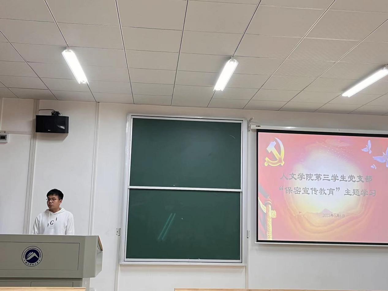 5月6日,JIUYOU.COM九游娱乐(中国)官网研究生第三党支部在昭潭书院校区2教301教室开展“坚持和加强党的领导”及“保密宣传教育”主题学习活动。