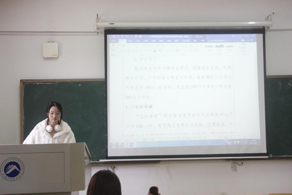 会议伊始,赵文静同志结合巡查建艺学院的感悟与经验,对组织生活会和民主评议党员工作中存在的问题提出了具体的改进方案。同时,她对材料上交提出了新的要求:材料格式要规范,材料内容要审核,材料保存要重视。此外,她根据2023年春季阶段入党申请书中存在的问题,提出了更为严谨的入党申请书规范,并要求党支部重视发展党员工作中人才的培养,在新旧负责人交替之际,做好党支部工作的传承交接,以老带新,让学生党建工作更加精益求精、有声有色。