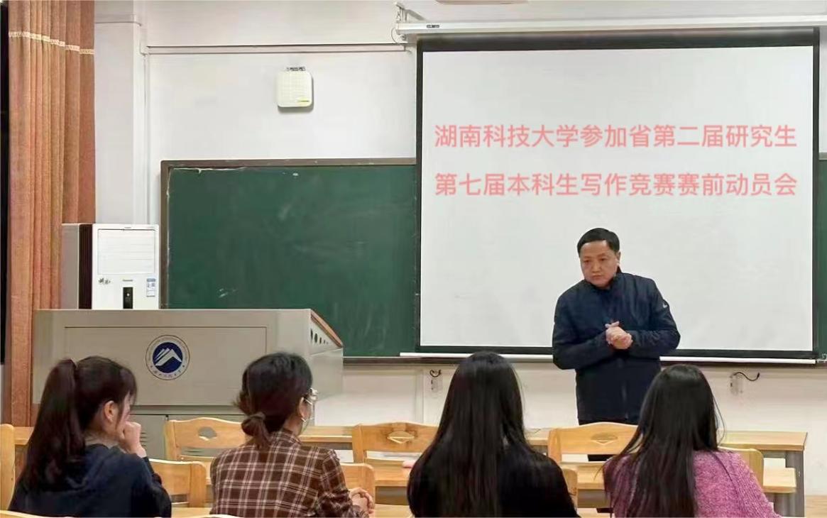 动员会上,袁星洁结合本科生及研究生省创意写作大赛历届考察情况,对参赛选手们进行赛前“补习”。他从创意写作、文学评论、演讲与写作三个项目出发,为本科生讲解参与省大学生第七届创意写作大赛的注意事项。针对研究生参加湖南省研究生第二届创意写作大赛,他嘱咐道:“省赛一定要写出自己当下真实的感受,表达出自己的真情实感。在赛前可以练习叙事性散文写作,锻炼自己在这方面的写作能力。”随后,他强调各位选手在赛前应主动联系各自的指导老师并进行适当的训练,做好充足的准备。