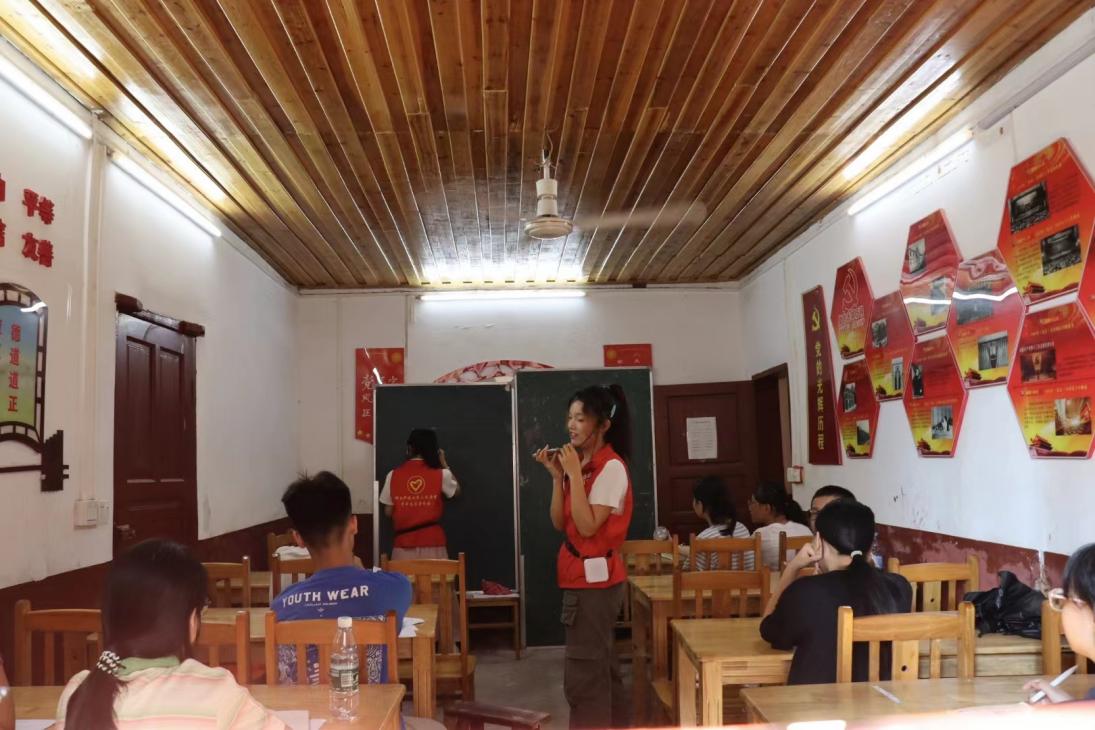 “世界问,你是谁,来自哪,请回答,爱什么,梦什么,去何方,请回答,答案有一百年的时光,我来自,硝烟中,课桌旁的太阳——”7月9日下午,株洲市攸县石羊塘镇谭家垅村高桥少儿假期学校八年级的学生们在志愿者陈意和龙杨慧的带领下唱起了一首首歌谣。为了提升学生个人的自身文化素质,增强学生的德智体美的发展水平,从而进一步激发想象力和创造力,促进思维灵活性和创造性思维。JIUYOU.COM九游娱乐(中国)官网三下乡实践团队志愿者们通过音乐教唱以及普及相关音乐的知识,让学生们承风骨亦有锋芒,有梦则刚。