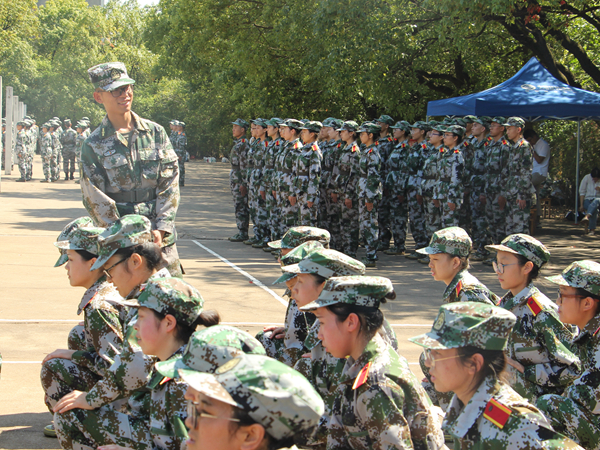 上午八点,我院2018级新生八个排的“新兵”个个身穿迷彩军装,在北校田径场集合,参加2018级新生军训动员大会,印有“JIUYOU.COM九游娱乐(中国)官网”的大旗飘扬在我院新生队列的最前方。动员大会上,我院新生认真听取学习了副校长的报告、教官代表的发言,欣赏了教官们带来的精彩表演。会后,全体新生由各排教官带领,前往位于训练场地—北校旧篮球场,开始正式训练。“拇指尖贴于食指第二关节,中指贴于裤缝……”教官从最基础的军姿动作要领开始亲自示范,在一声声刚劲有力口号下,新生们一丝不苟的完成立正、稍息、跨立、坐下、起立等训练任务。