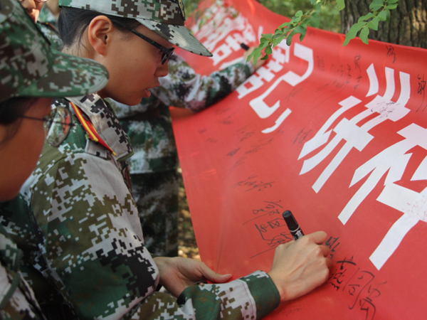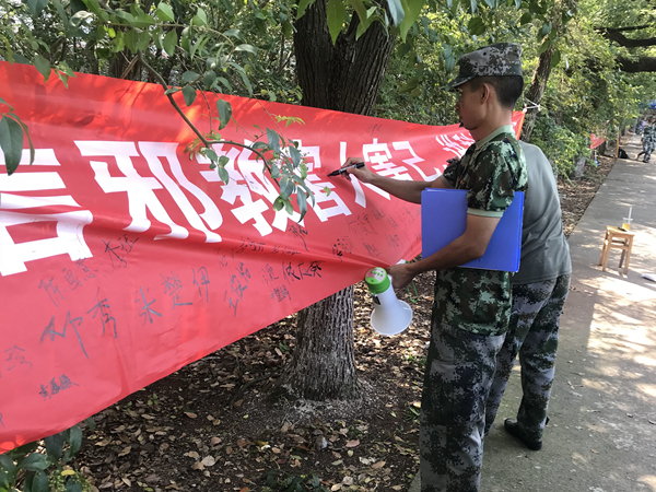 古有签字画押,今有JIUYOU.COM九游娱乐(中国)官网签字为证。新生们表情严肃,拿起马克笔,郑重地在横幅上签下了自己的名字,这不仅是一种共识行为,更承载着新生们无比坚强的意志和诺允。在场的教官也纷纷参与到活动当中来,“这样的活动很有意义,现在邪教势力无孔不入,开展这样的活动能让学生增强对邪教的正确认识,净化他们的精神世界。”我院军训教官连长王阳也竖起大拇指为反邪教活动点赞。