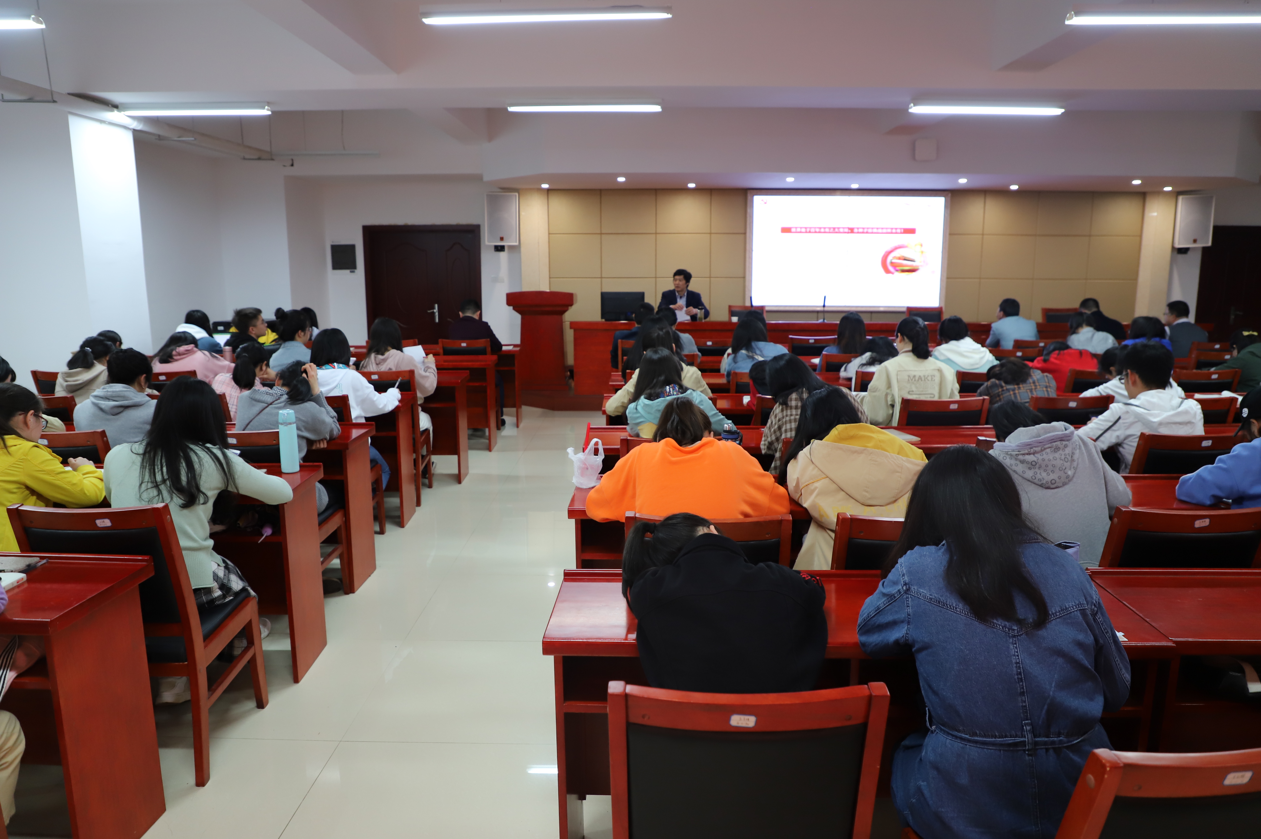 讲课一开始,赵部长就通过引用“If you want to build a ship,don't drum up your men to collect wood and give orders and distribute the work.Instead,teach them to yearn for the vast and endless sea.”埃克苏佩里的这一句名言来阐述目标、理想对人的重要引领作用和激励作用,并因此对党员和学生入党积极分子提出两点要求:首先我们应该从理想目标这一维度来认识和理解我党的性质;其次作为大学生应该树立自己远大的目标和理想,并通过加入党组织把自己的个人理想融入到社会的理想和时代的责任中去。