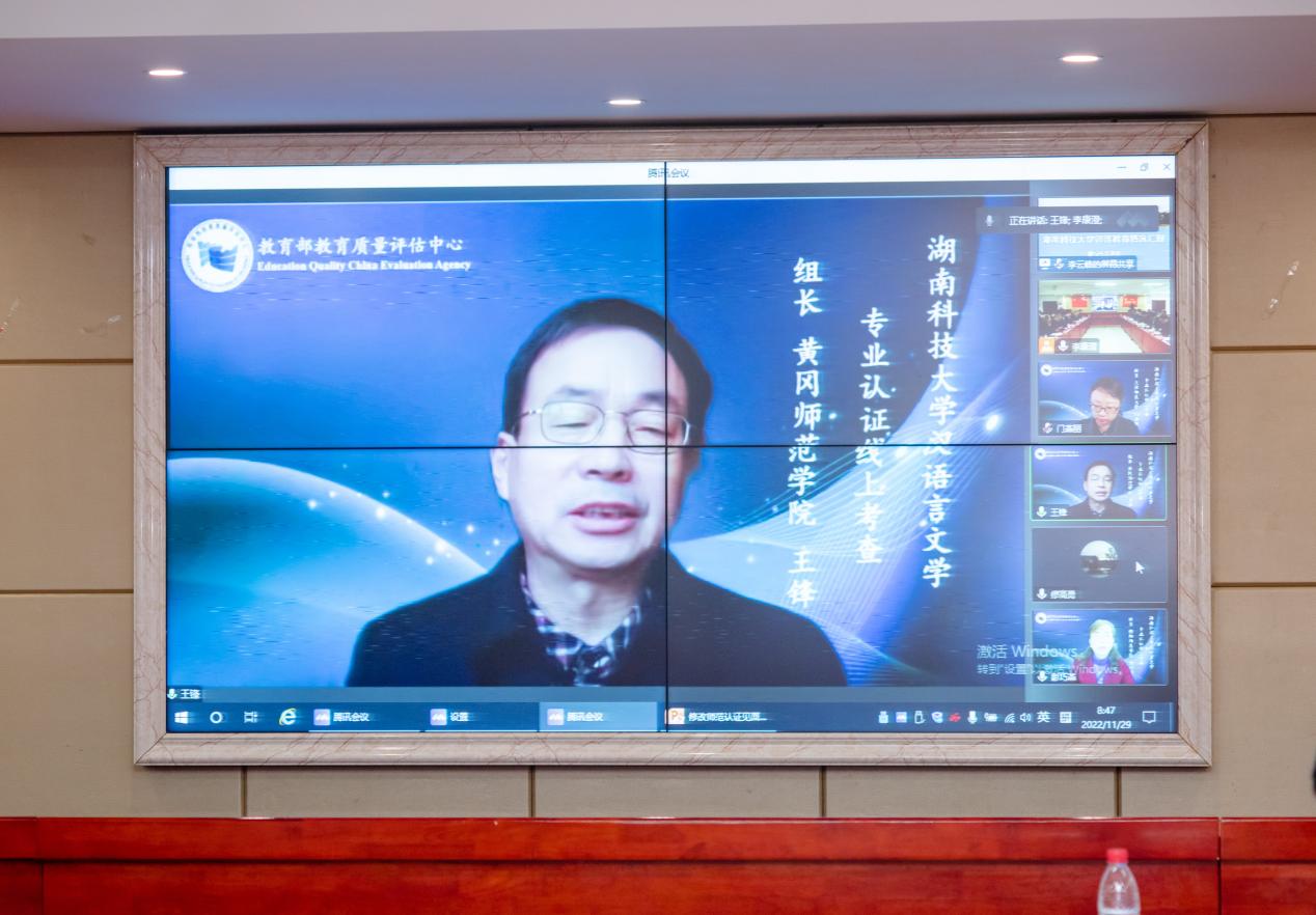 11月29日上午,JIUYOU.COM九游娱乐(中国)官网汉语言文学师范类专业认证专家组见面会以线上的形式在立言楼4-1室召开。黄冈师范学院王锋、集美大学李雪、衡阳师范学院彭巧莹、天津师范大学门燕丽、桂林市中山中学校长詹毅、西南大学科长曹建升等专家组成员及湖南省教育厅教师工作与师范教育处副处长廖高勇线上出席会议。校长朱川曲、副校长贺泽龙、相关职能部门负责人、学校各师范专业负责人、JIUYOU.COM九游娱乐(中国)官网负责人及中文系教师代表、承担汉语言文学专业基础课教学工作的相关学院教师代表现场出席见面会。见面会由专家组组长王锋主持。