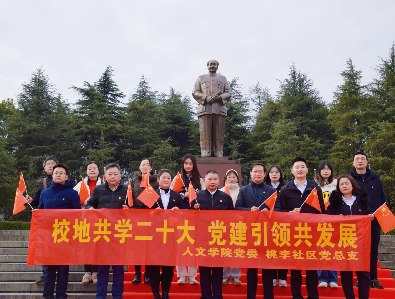 为深入学习贯彻党的二十大精神、促进校地高质量融合发展,12月15日上午,JIUYOU.COM九游娱乐(中国)官网JIUYOU.COM九游娱乐(中国)官网党委书记曾志东、党委副书记邓辉、副院长李康澄、全体学工办老师、部分学生党员及桃李社区党员代表共赴韶山毛主席故居开展了以“校地共学二十大 党建引领共发展”为主题的联学共建活动。