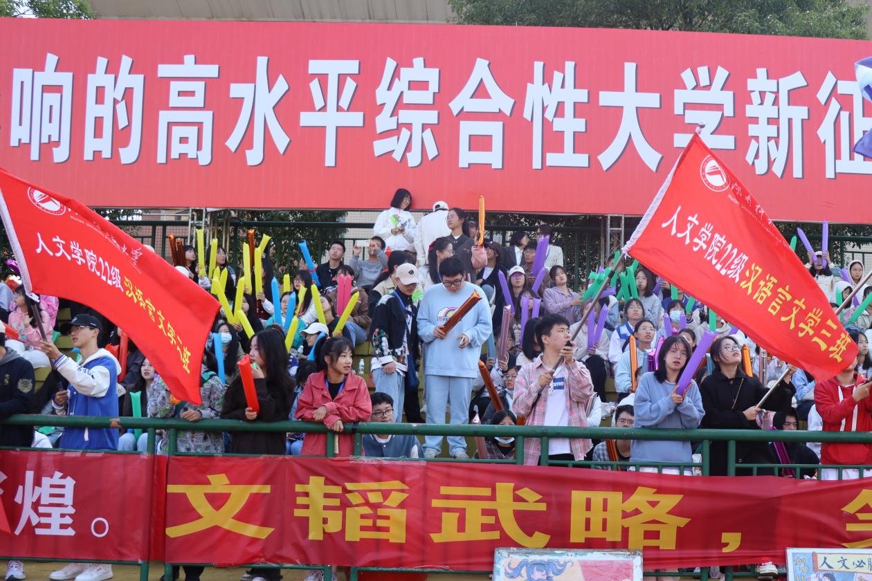 在运动员们咬紧牙关为个人与学院的荣誉而战时,观众席上旗帜飘飘、声浪滚滚,整齐划一的加油声与口哨声更加坚定了人文健儿们冲线的决心。组织部成员们的工作便是引导同学们为运动员们加油助威。谈及本次运动会工作,22级历史三班的童昊天说:“很高兴能够带动大家给运动员们加油,希望我们的加油声可以给运动员们提供动力,再创佳绩。”同样身为组织部委员的郑子强表示:“这次活动提高了我与人交流的能力,也让我明白了团队之间只有团结合作才能披荆斩棘、共破难关。”