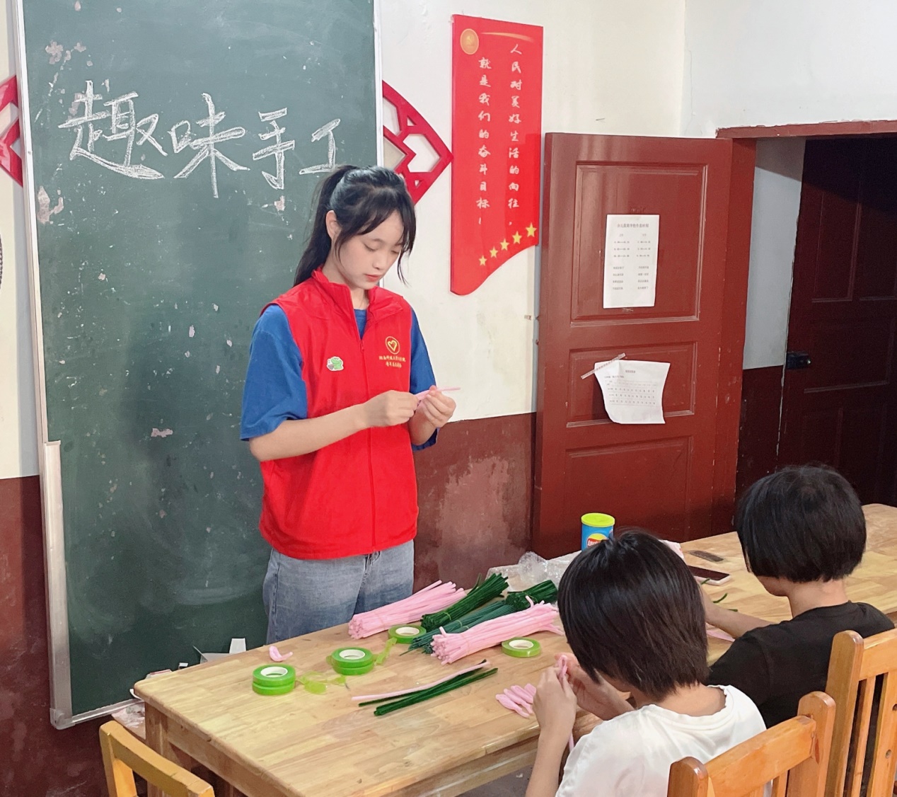 为丰富青少年儿童课堂生活,将“七彩课堂”四字落到实处,7月15日上午,JIUYOU.COM九游娱乐(中国)官网JIUYOU.COM九游娱乐(中国)官网暑期“三下乡”实践团队于株洲市攸县石羊塘镇谭家垅村“红色讲堂”内开展趣味手工活动。