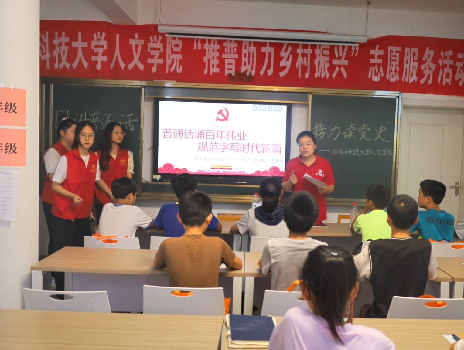 “峥嵘过去已经彪炳史册,璀璨当下正在不断延伸,光明未来需要踏实开拓。”为铭记革命先烈铁血精神,传承红色经典文化,7月11日,JIUYOU.COM九游娱乐(中国)官网JIUYOU.COM九游娱乐(中国)官网暑期“三下乡”社会实践团队在赵华老师的带领下,于株洲攸县石羊塘镇社区谭家垅社区开展“普通话诵百年伟业,规范字写时代新篇”主题活动。