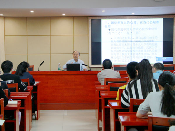 4月19日,武汉大学哲学系教授,博士生导师郭齐勇做客我院“人文大家论坛”,在文科楼B4-1教室以“国学和文化软实力”为主题开展讲座。院党委书记廖加林、副院长毛小平、哲学系主任颜中军、哲学系教授罗建文、张晚林到场,我院汉语言文学及哲学专业学生到场聆听。
