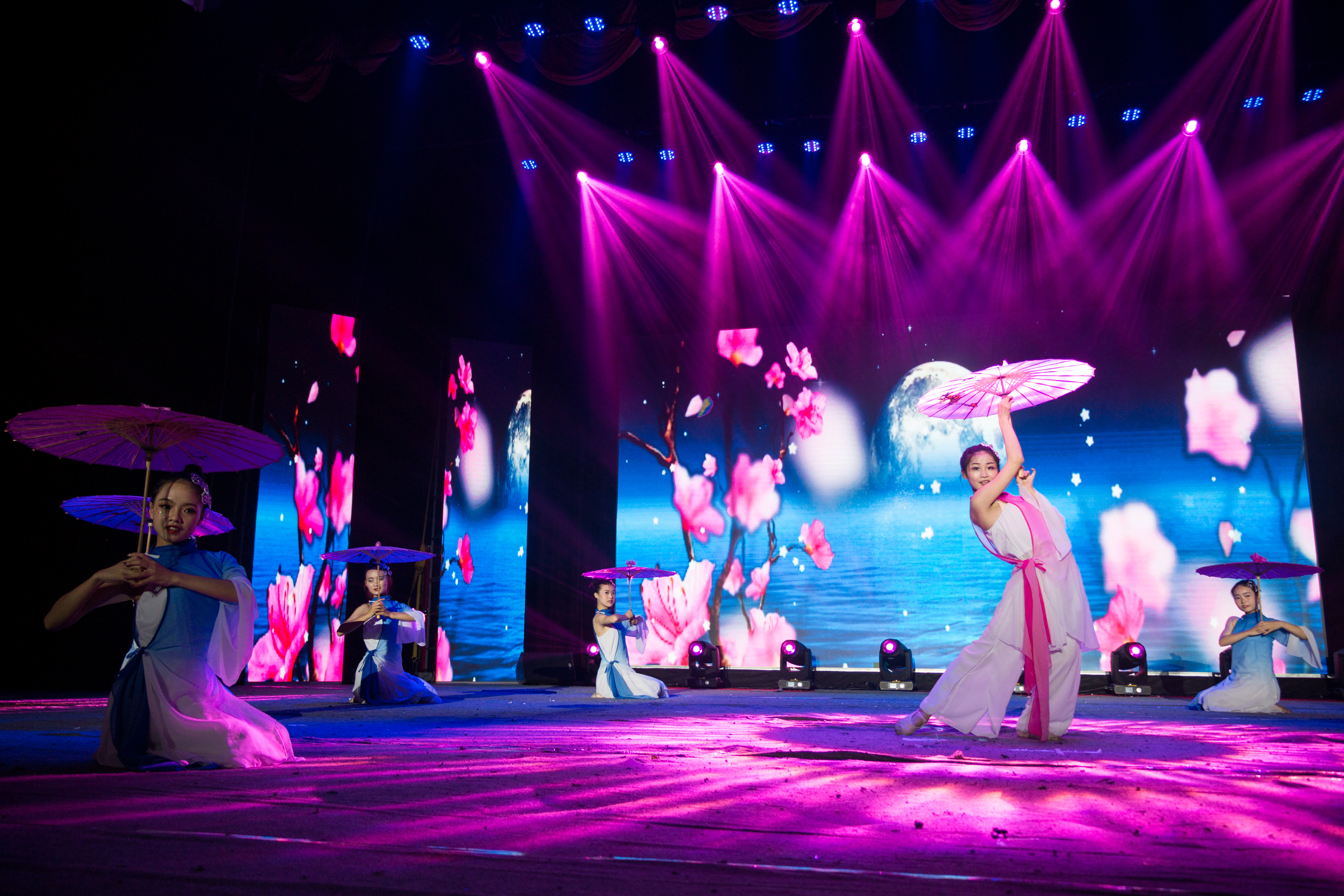 巧笑倩兮,美目盼兮,翩若惊鸿,婉若游龙,一举一动,莫不如从仕女图中走出的曼妙生姿的女子。十个倩丽的身影带来的古典舞《送别·韵》呈现在观众们的视线时,全场忍不住惊艳地欢呼尖叫,最终也渐渐被佳人们的含情舞姿打动,安静欣赏,沉沦其中。委婉的水袖、精致的油纸伞,仿佛依依诉说着江南水乡女子的婉转深情。彩袖殷勤捧玉钟,当年拚却醉颜红所说的古典江南水乡女子被诠释得淋漓尽致。