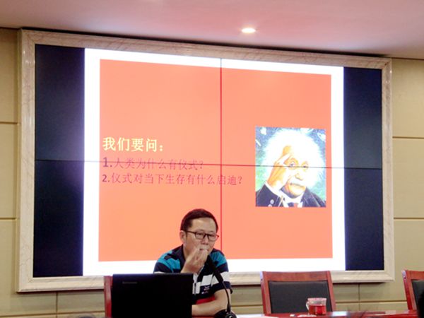 此次讲座,罗渊教授围绕概念、类型、特点、效用、原理五个方面展开,结合大量民俗、社会、宗教、政治等方面的照片与具体事例,从多方面形象生动地阐释了“仪式”的内涵,进一步将“仪式”知识系统体系化。“仪式通常被界定为象征性的、表演性的、由传统文化所规定的一整套行为方式,仪式类型可以分为以重大主题、专门场地、特定程序为代表的正规化仪式,以及以日常生活中的交际仪式为代表的生活化仪式,仪式行为是不同于生活常态行为的一种超常态行为。”罗渊教授指出。