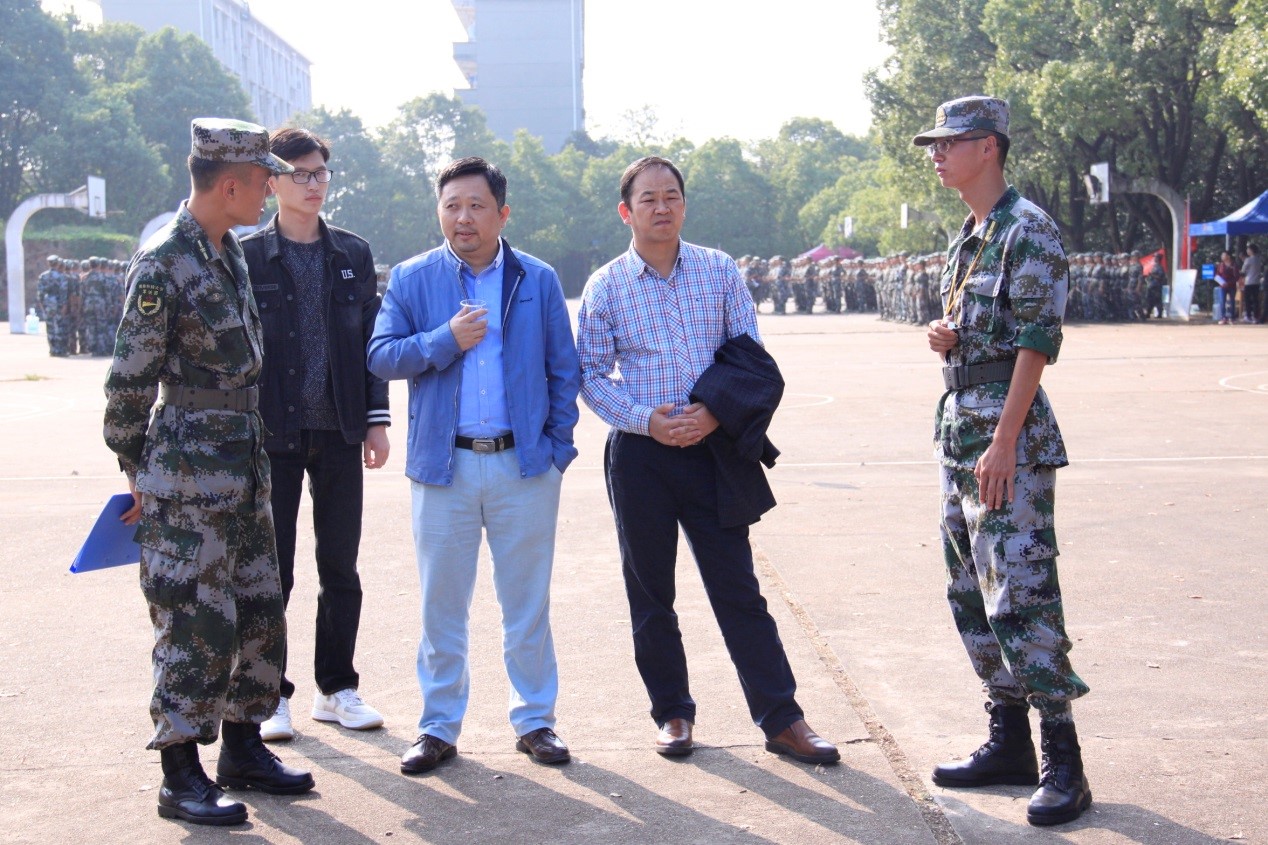 天朗气清,金桂飘香,军训场上,绿意蓊蓊,光影斑驳。几位熟悉的身影缓缓地朝军训队伍走来,一声声“书记好,书记好……”响亮了整个安静的训练场。“同学们,辛苦了!”JIUYOU.COM九游娱乐(中国)官网党委副书记邓辉向军训新生亲切慰问道。10月6日下午,在学生会主席李煜的陪同下,党委副书记邓辉、学工办主任马忠石来到训练场视察新生军训,了解本院新生军训进展。他们脸上,满是笑容。