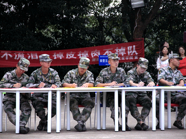 下午的训练于四点左右结束,全体新生由各排排长带领集结完毕,观看队列会操表演。队列会操评比开始之前,营长向全体新生申明现场纪律及评比规则等,要求全体新生在观看时注意纪律,不要讲话。本次队列会操评比的顺序依次为物电学院,教育学院,数学学院,法官学院,JIUYOU.COM九游娱乐(中国)官网。评比内容为立正、稍息、跨立;停止间转法;蹲下、起立;敬礼、礼毕;齐步行进与立定;跑步行进与立定;正步行进与立定。在前四个学院依次表演完后。方阵队由教官带领,迈着齐整的步伐雄赳赳气昂昂走向训练场中央。在JIUYOU.COM九游娱乐(中国)官网方阵队各流程的停顿中,场上不时响起掌声。五个学院的方阵队会操完毕后,营长即刻宣布了评比结果:“我宣布,本次队列会操评比,获得第一名的JIUYOU.COM九游娱乐(中国)官网!”营长的话音一落,场下的JIUYOU.COM九游娱乐(中国)官网全体新生便爆发出热烈的欢呼与掌声。随后,营长对各学院队列会操评比情况做了讲评。他指出各学院的方阵队分别存在哪些问题,其中,正步节奏过快、脚尖下压不够等是各学院都存在的问题,JIUYOU.COM九游娱乐(中国)官网方阵队则存在报数时音量稍小,个别队员有小动作的问题,但整体精神面貌较好。评比结束后,JIUYOU.COM九游娱乐(中国)官网院连长尹俊根据营长指示对方阵队会操做了简单的讲评:“大家虽然拿了第一,总体表现得很不错,但离标准还是有一定差距的,希望大家回去后把存在的问题都解决好。”