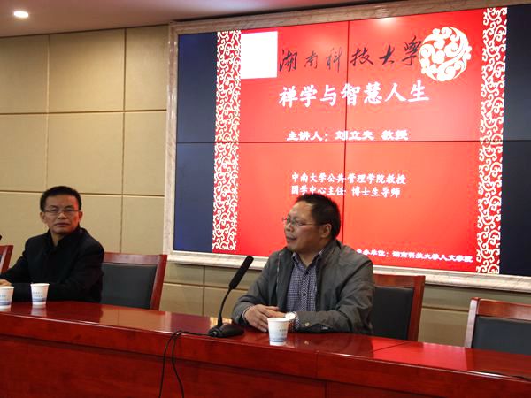 10月13号晚,应我院邀请,中南大学公共管理学院博士生导师刘立夫教授在文科楼B4-1面向哲学、思政专业的同学做了题为“禅学与智慧人生”的学术讲座。讲座由院党委书记廖加林教授主持,毛小平、颜中军、李育军、凌应生、鲁茜等老师出席了此次讲座。