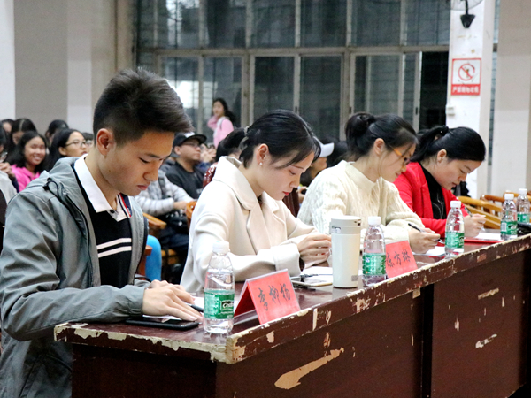 10月20日晚7时,由JIUYOU.COM九游娱乐(中国)官网团委学生会主办,语言艺术团承办的“青春献党· 艺染湖科—JIUYOU.COM九游娱乐(中国)官网2017级新生演讲决赛”拉开帷幕。来自不同专业的十二名选手在初赛选拔中脱颖而出,顺利进军决赛,并于我校南校学生活动中心展开巅峰对决。我院学工办主任马忠石老师、学工办赵华老师、学工办成伟明老师、学工办赵晗冰老师、学工办钱子凡老师、学生会主席团成员、各部门部长及学工助理到场聆听,并担任评委。此外,本次比赛还特邀原校广播电视台播音部部长陈方琳、15级新生演讲赛冠军得主李柳杨担任评委,部分2017级新生也到场见证了此次激烈对决。