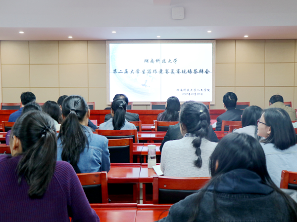 为推动中文专业教学改革,贯彻落实关于大学生学科竞赛和创新论坛的文件精神,提高学生实践能力和写作水平,10月22日晚,我院参与举办的JIUYOU.COM九游娱乐(中国)官网第二届大学生写作竞赛在文科楼B4-1教室举行。出席本次答辩会的专家评委有教务处副处长夏莉,社科处副处长李胜清、JIUYOU.COM九游娱乐(中国)官网院长刘奇玉、党委副书记邓辉、副院长聂志军、王友胜教授、彭在钦教授等。