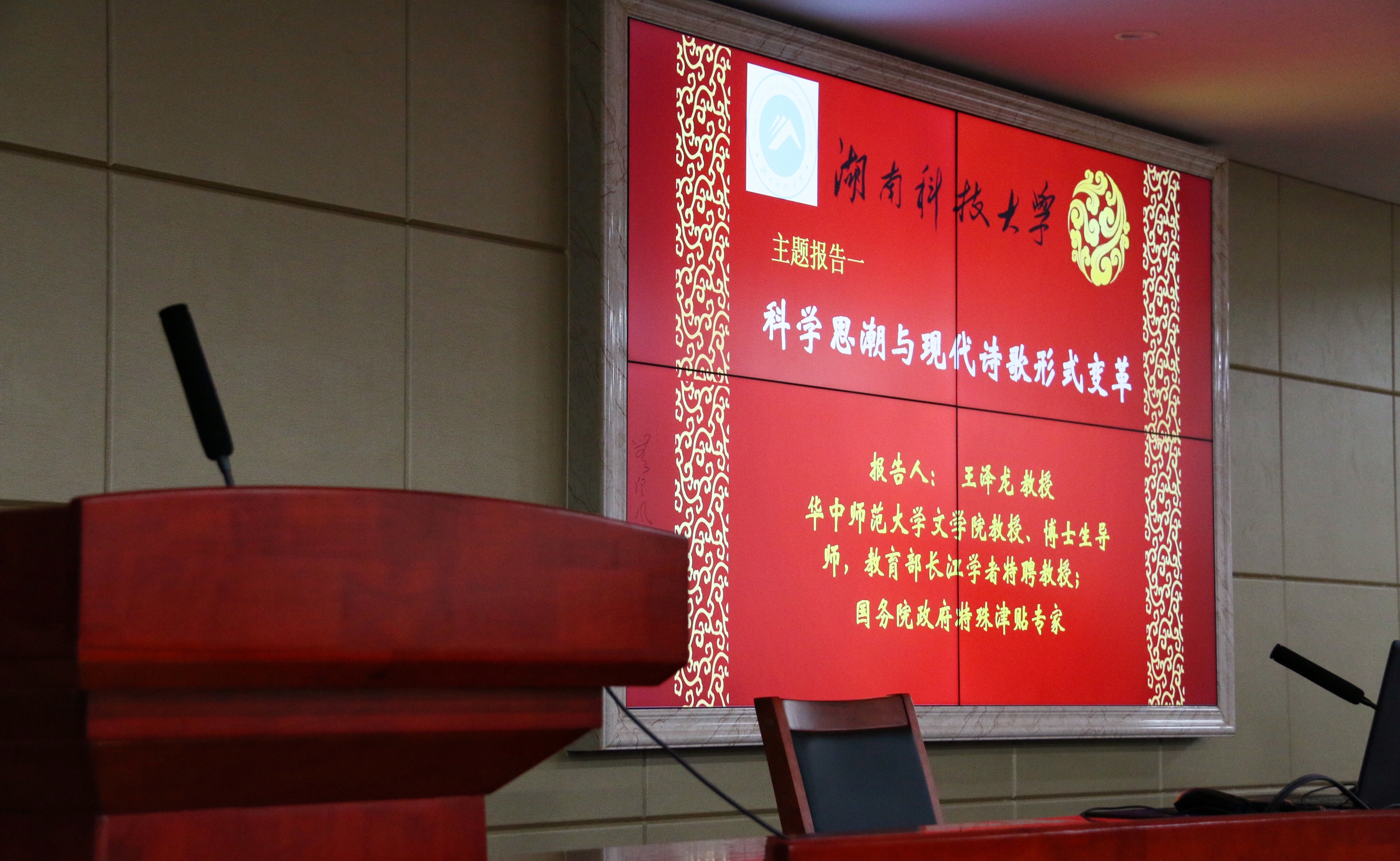 11月18日下午,湖南省第十届研究生创新论坛“人文学术创新与文化传承”分论坛主题报告之一在JIUYOU.COM九游娱乐(中国)官网立言楼B4-1教室举行,长江学者、华中师范大学文学院王泽龙教授应邀来我校讲学,为我校师生带来一场题为《科学思潮与现代诗歌形式变革》的讲座。讲座由JIUYOU.COM九游娱乐(中国)官网研究生院与JIUYOU.COM九游娱乐(中国)官网JIUYOU.COM九游娱乐(中国)官网共同举办,吴投文教授主持讲座。JIUYOU.COM九游娱乐(中国)官网院长刘奇玉教授、刘郁琪副教授、胡志明博士、杨石峰博士等出席讲座,来自我校JIUYOU.COM九游娱乐(中国)官网、教育学院、马克思主义学院、外国语学院等的研究生及部分本科学生到场聆听讲座。