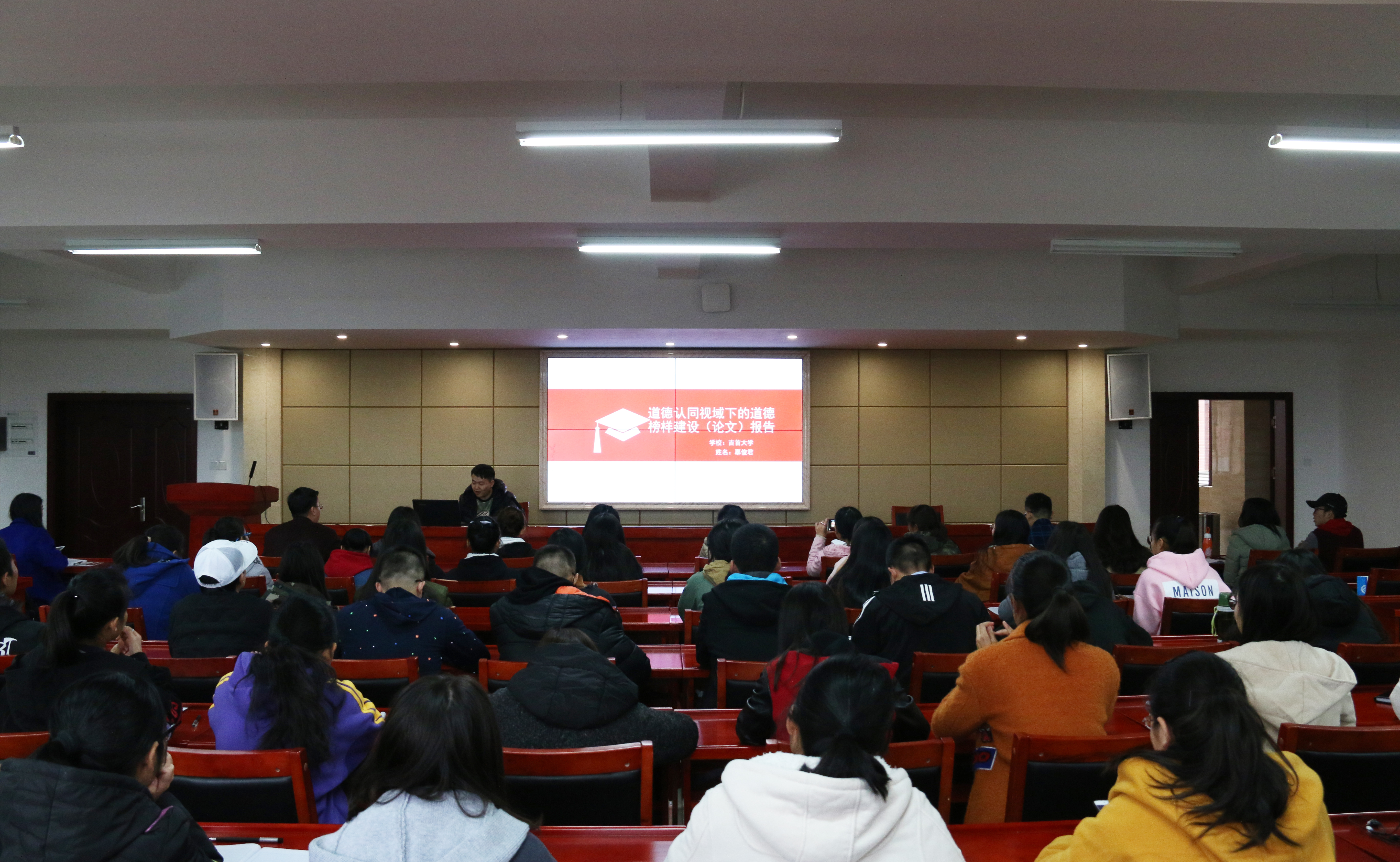 报告会现场,来自南华大学、中南大学、JIUYOU.COM九游娱乐(中国)官网、吉首大学的8位研究生进行了优秀论文报告。来自中南大学的李哲从研究背景、研究内容和研究结论三个方面向大家报告了她的论文《提升亲和力和针对性,增强思想政治理论课实效性》。李哲认为,增强思想政治理论课的实效性是高校关注和探索的时代命题。亲和力和针对性是增强思想政治理论课实效性的重要条件。改善教师教育教学方式、提升教师人格魅力、树立“以人为本”的教育理念、搭建信息化网络平台、完善实践教学是增强思想政治理论课亲和力和针对性的重要路径。