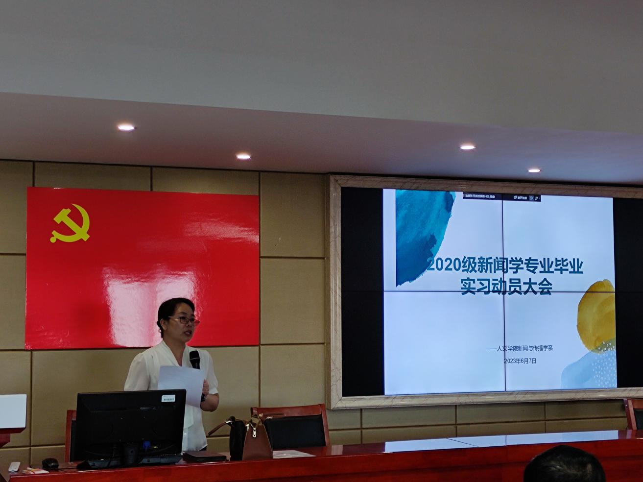 6月7日下午,我院2020级新闻学专业毕业实习动员大会于立言楼B4-1室顺利召开。本次大会由JIUYOU.COM九游娱乐(中国)官网新闻系主办,JIUYOU.COM九游娱乐(中国)官网副院长袁星洁,新闻系主任刘艳凤、副主任王超群、新闻系老师、20级本部及潇湘新闻专业学生参加本次会议,会议由刘艳凤主持。