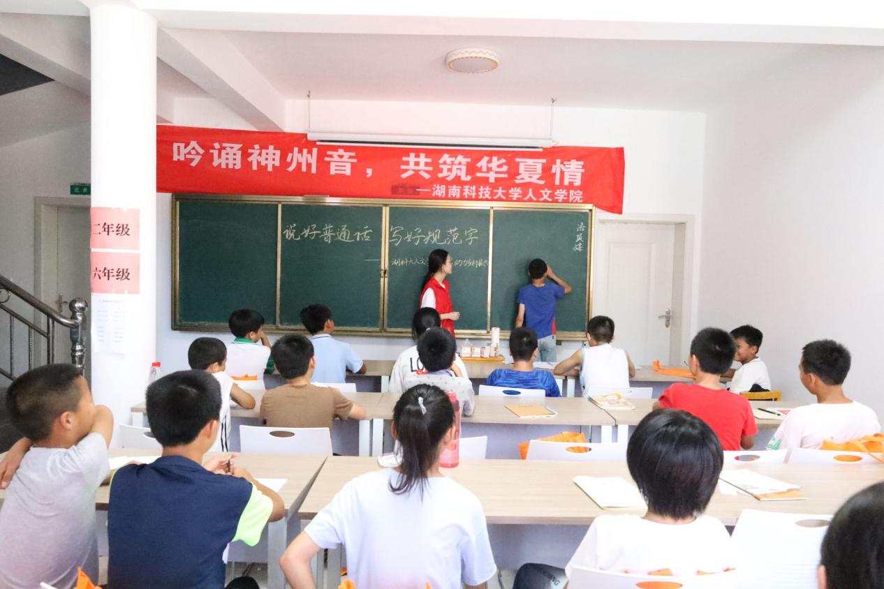 为深入贯彻习近平总书记关于教育的重要论述,加大农村地区国家通用语言文字的力度,践行志愿服务精神,发挥专业优势,助力乡村振兴。7月8日,JIUYOU.COM九游娱乐(中国)官网JIUYOU.COM九游娱乐(中国)官网暑期“三下乡”社会实践团队在株洲市攸县石羊塘镇高桥少儿假期学校开展主题为“吟诵神州音 共筑华夏情”的推普活动,为乡村振兴,贡献语言力量。
