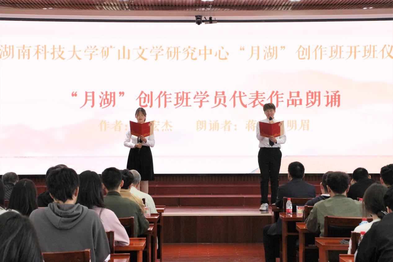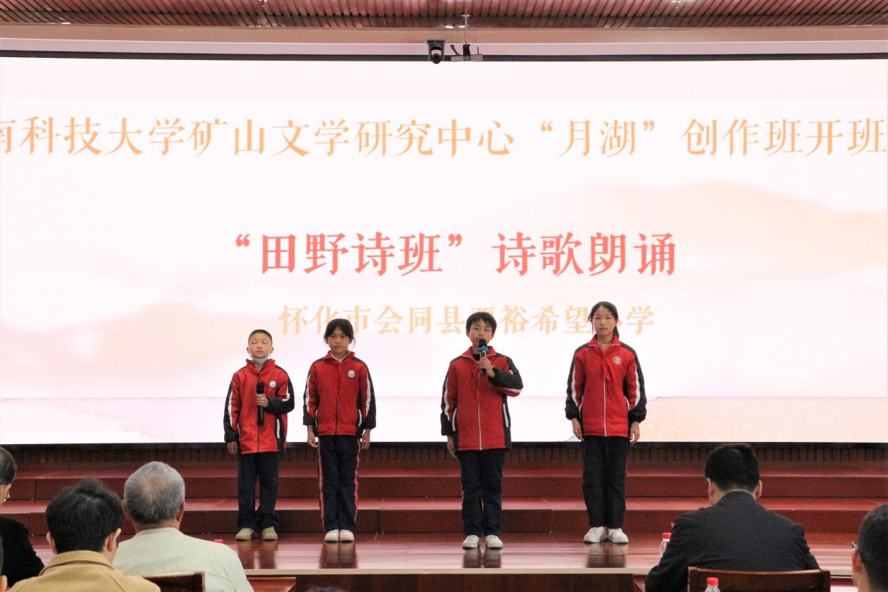 开班仪式上,周智华指出:“此次活动既是一次难得的学习契机也是重要的交流平台,这不仅有益于促进育人资源、提升我校人才培养质量,促进校园文化建设,同时有利于加强和拓展作家、读者和学者之间的交流,可以称得上是一次真正的文学盛会。”谭谈表示:“今天我们和你们聚在这里,是‘朝阳’和‘夕阳’的面对面,而月湖创作班正是你们的练军堂,希望你们可以抓住机会好好练习,未来可以成为一名英雄的作家。”吴投文在发言中传达了对创作班学员们的深切祝福,他表示,学校领导高度重视“月湖”创作班,在场的36位学员都是从JIUYOU.COM九游娱乐(中国)官网脱颖而出的,“月湖”创作班将致力于强化学员的写作兴趣、提高学员的写作技能,让创作班全体学员成为现代化新型写作人才。仪式在创作班学员代表与怀化市会同县粟裕希望小学“田野诗班”四位小学生的朗诵声中圆满结束。