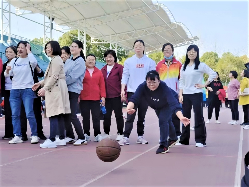 女教职工参加运球接力