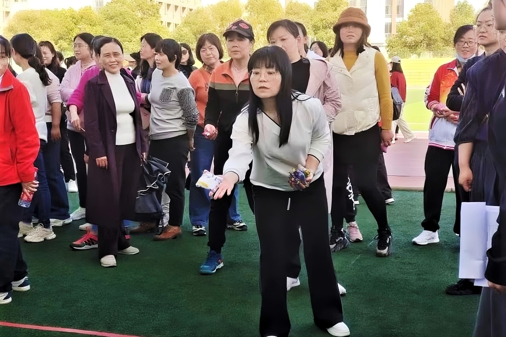女教职工参加丢沙包