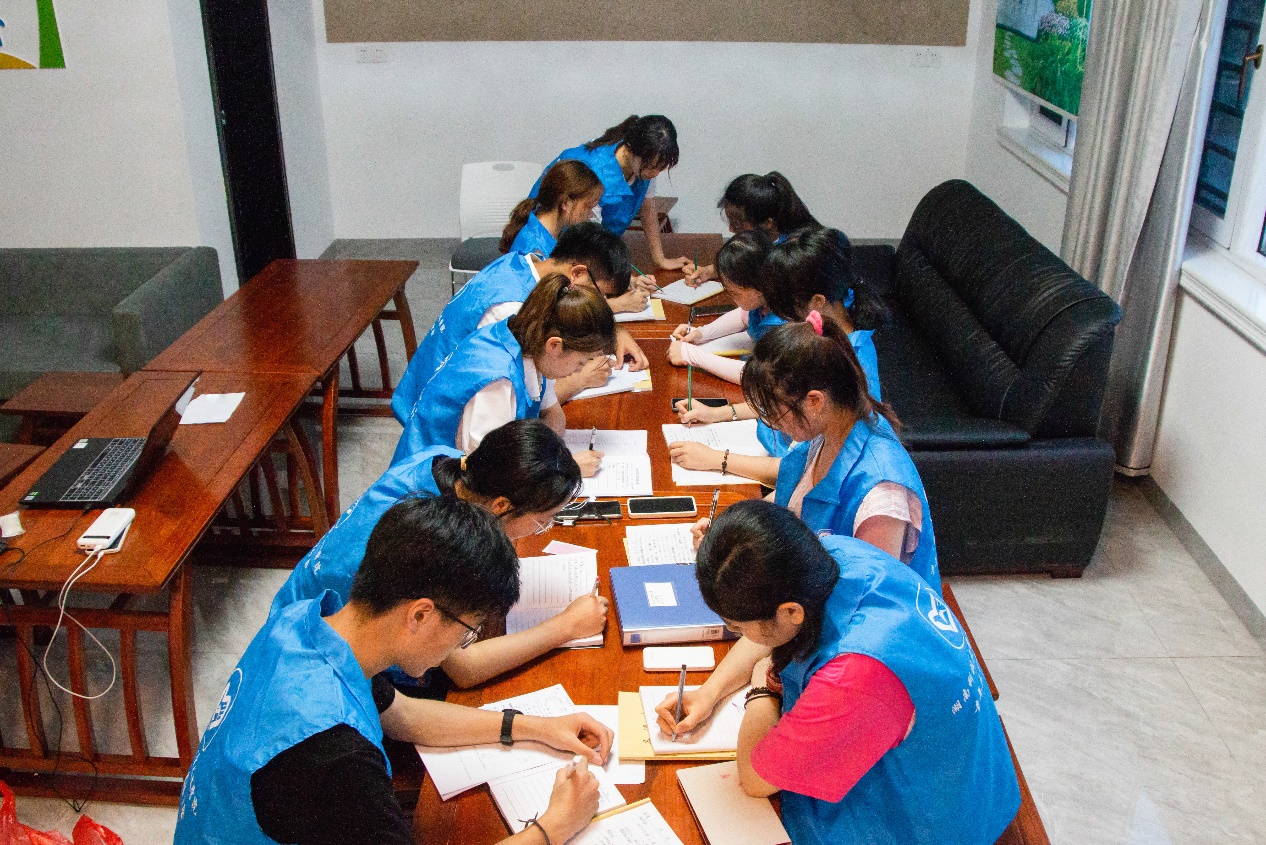 "嘀嘀、嘀嘀……",六点的闹铃一响,志愿者们迅速起床洗漱。早饭后,他们沿着两侧布满牵牛花、狗尾巴草的小道来到教学点。JIUYOU.COM九游娱乐(中国)官网团委书记曾思妍说:“在昨天了解当地留守儿童、教学环境等情况之后,我们便组织开会为各个班级分配了班主任及科任老师,要求各位志愿者提前备课,以确保今天的的教学顺利进行,让留守儿童感受来自青年志愿者们的温暖与关怀。”