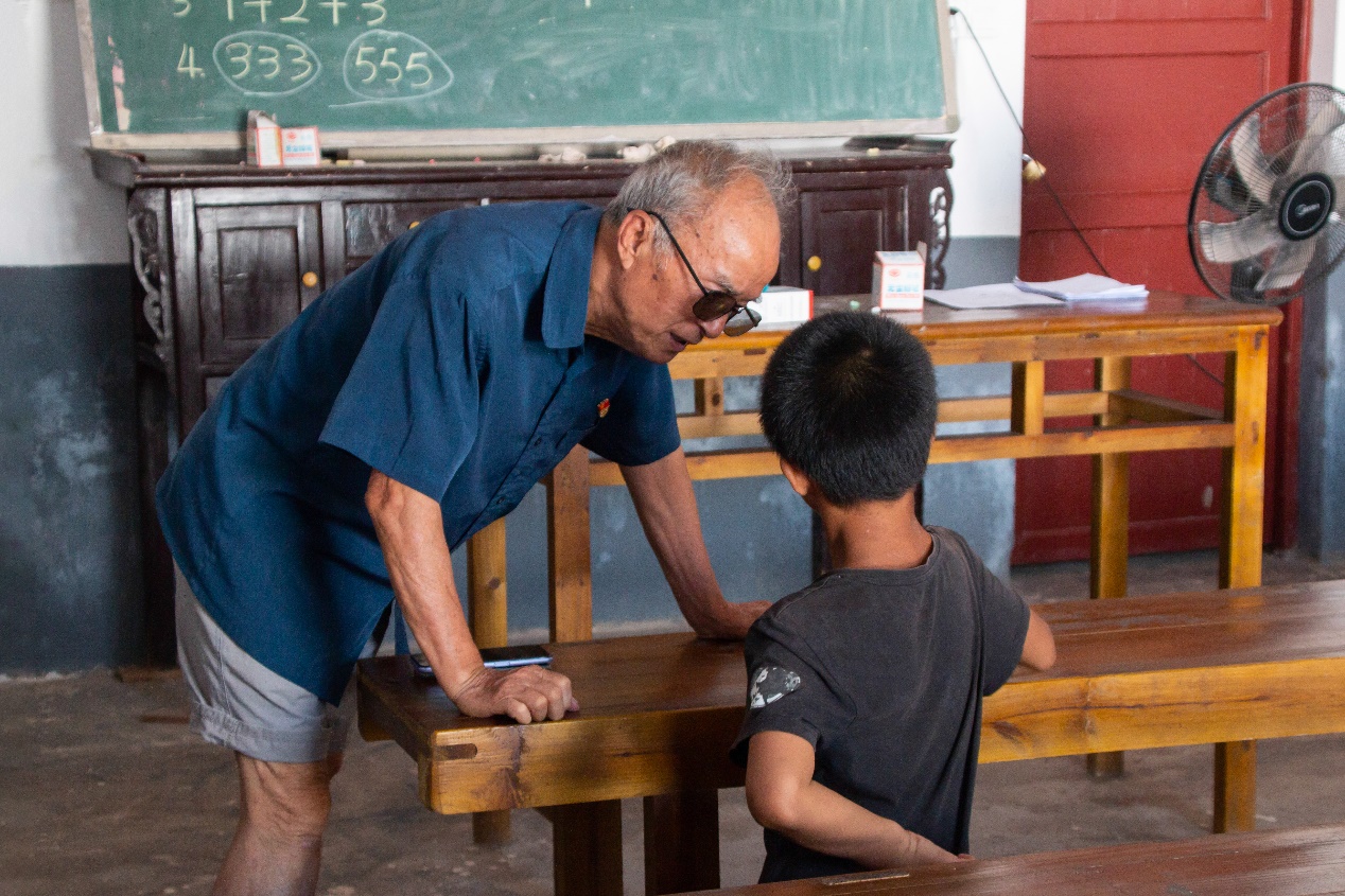 “今天是入伏第一天,天气很炎热,不能让高温影响这些孩子的学习。”夏教授止不住对学生们的牵挂,顶着烈日默默站在教室后门、悄悄倚在教室侧窗边,赤脚奔波于各个班级,时刻关注留守儿童们的上课情况。