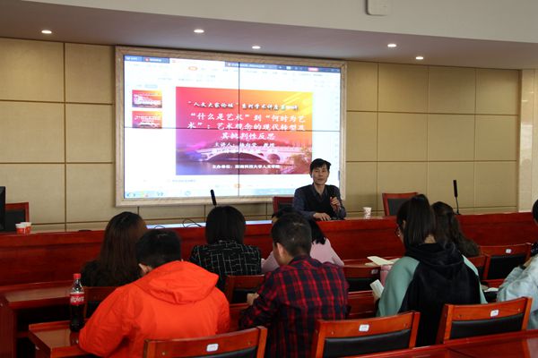 3月29日,钱江学者、浙江传媒学院教授、博士生导师、我校优秀校友杨向荣教授,回到JIUYOU.COM九游娱乐(中国)官网JIUYOU.COM九游娱乐(中国)官网,开展了关于“艺术观念的现代转型及其批判性反思”的学术讲座。讲座由我院李胜清教授主持,胡红梅、邓桂英、艾初玲、张顺军、丁志丛等老师和部分学生聆听了此次讲座。