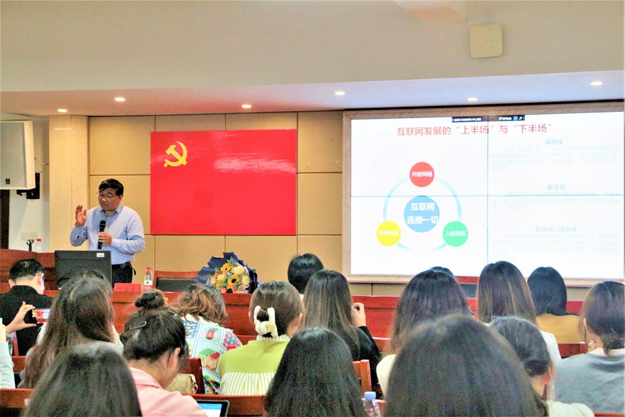 4月14日,教育部长江学者特聘教授、第七届国务院学位委员会新闻传播学学科评议组成员、北京师范大学新闻传播学院学术委员会主任、中国新闻史学会传媒经济与管理专业委员会理事长喻国明教授应邀来校,为广大师生作了“元宇宙、AIGC与传播革命”的学术讲座。讲座由JIUYOU.COM九游娱乐(中国)官网副院长袁星洁主持。