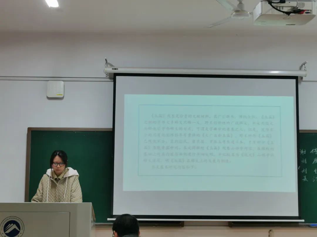 谢婷婷的论文题目为《原本<玉篇>山部字研究》,徐前师老师建议论文中关于顾野王的资料、《玉篇》编纂的体例可以写得更加详细,同时指出了论文中存在的标点问题和表格格式问题。赖积船老师认为论文还要注意章节之间的逻辑,重新编排目录。聂志军老师指出“稽考”和“校录”的区别,建议把握好研究对象。针对按语的写作,秦凤鹤老师补充说明了应当有自己的见解,不能只摘录他人的内容。